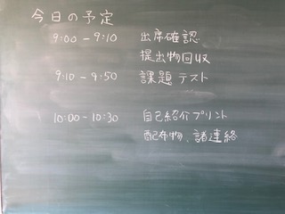 今日は提出物の回収等と課題テストです。