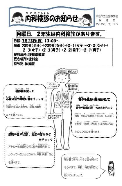 内科検診のお知らせ(2年生)