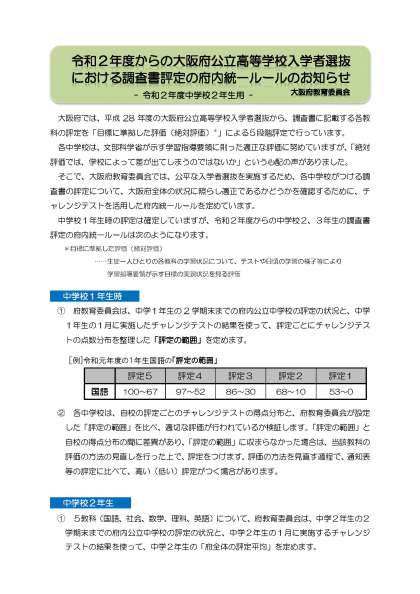 令和2年度からの大阪府公立高等学校入学者選抜における調査書評定の府内統一ルールのお知らせ 令和2年度 2年生用(1)
