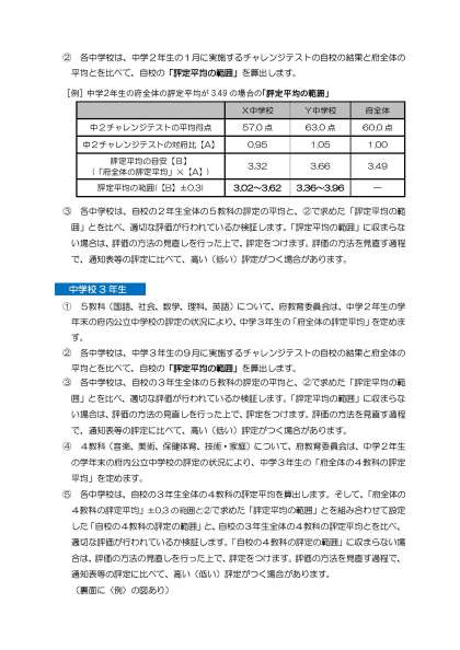中学校1年生時の評定は確定していますが、令和2年度からの中学校2、3年生の調査書評定の府内統一ルールは次のようになります。