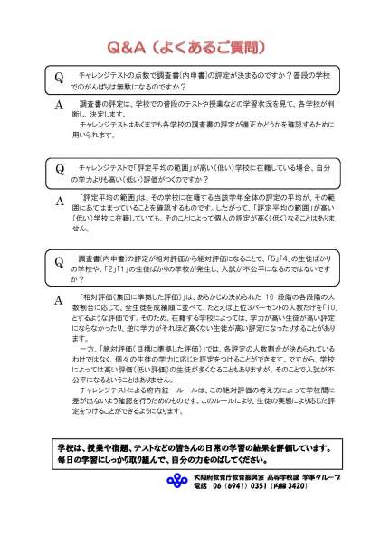 令和2年度からの大阪府公立高等学校入学者選抜における調査書評定の府内統一ルールのお知らせ 令和2年度 3年生用