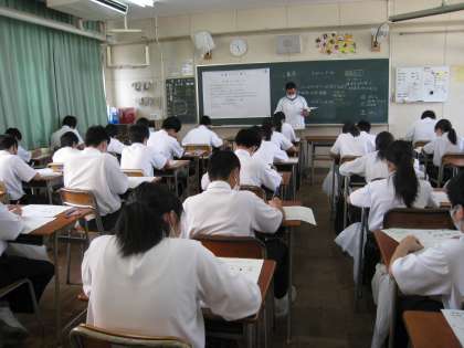 2限目、1年生は英語。初めてのリスニングテストにも挑戦しました。