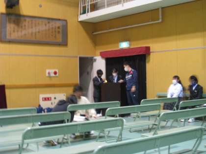 体育館で合唱コンクールのリハーサルに