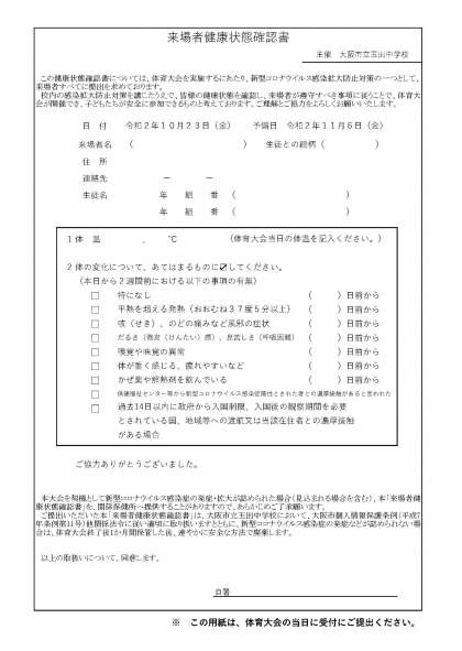 体育大会当日の持ち物、服装と注意事項(連絡)