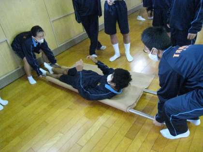 武道場で搬送法訓練です。