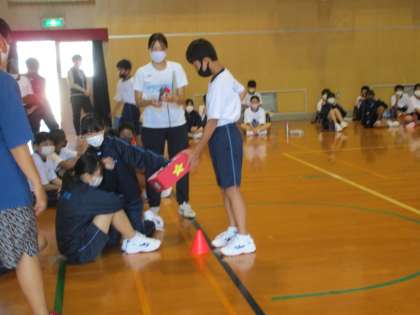 先生方とのじゃんけんに勝利して、次の人にバトンタッチ!