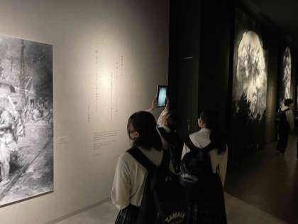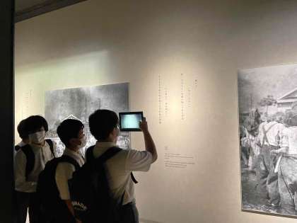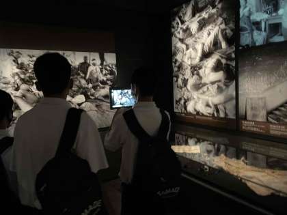 学校に戻り、平和学習をするときの資料をタブレットで収集しています。