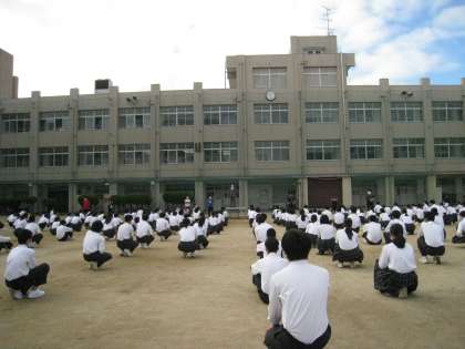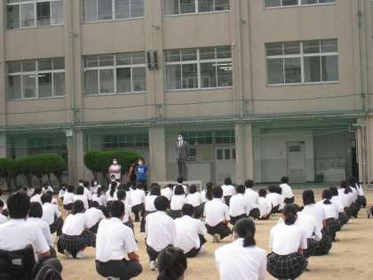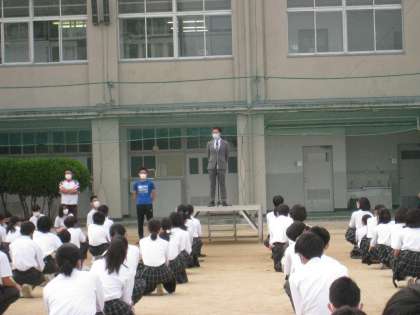 晴天のもと、全校集会がおこなわれました。