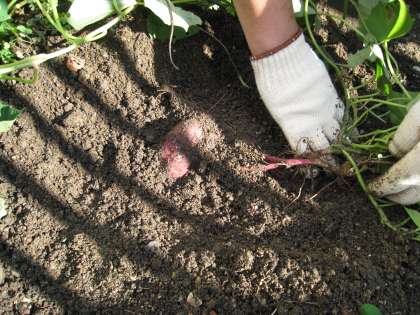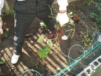 本日は、サツマイモを収穫しました。