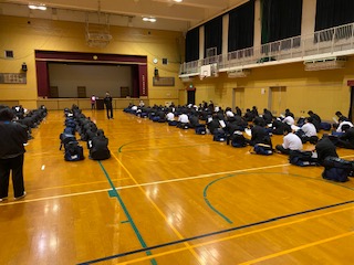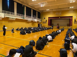 明日から、始まる2年生一泊移住に向けて事前指導が行われています。