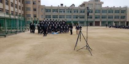 3年生の学級写真撮影の様子です。