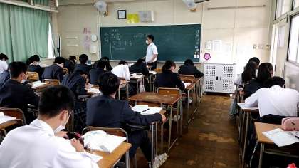 左から順に、1組英語、2組家庭科、3組数学の授業の様子です。
