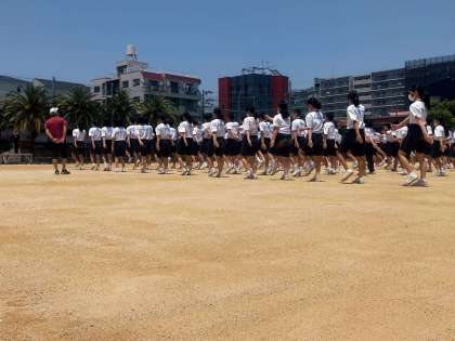 マスクの着脱や給水に配慮しながら取り組んでいます。