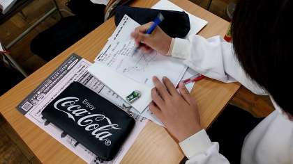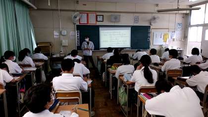 1年生理科の授業。無脊椎動物について学習しています。昆虫や甲殻類の絵を描いているところです。