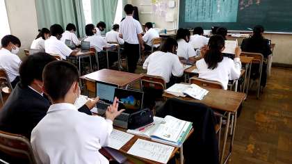 右の写真は3年生国語、四字熟語の読み調べ、意味調べに取り組んでいます。
