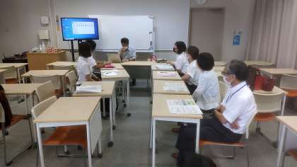 桃谷中学校に本校教員がお伺いし、数学科授業を参観させていただきました。終了後、1人1台端末の有効活用について、同校首席の方にアドバイスをいただきました。