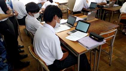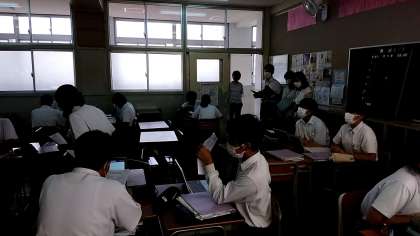 教育委員会事務局総務部教育政策課の皆さんが、1人1台端末を活用した授業を視察されました。