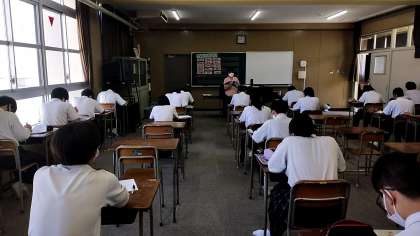 鑑賞の授業です。写真ではお届けできませんが、チェコの作曲家スメタナが編んだブルタバ(モルダウ)が流れています。