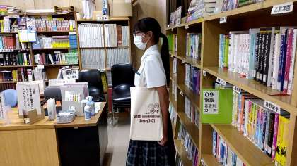 学びサポーター様を通じて、貸出図書を持ち帰る際に利用するトートバッグを贈呈いただきました。