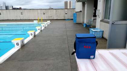 PTAのご協力のもと、今夏プールにAEDを配置しています。水泳授業の安全に役立ています。