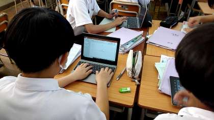 3年生英語科の授業です。暗証テストの練習、自己紹介用のパワーポイントの作成、長文(Faithful Elepants)読解と盛りだくさんの授業でした。