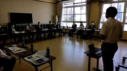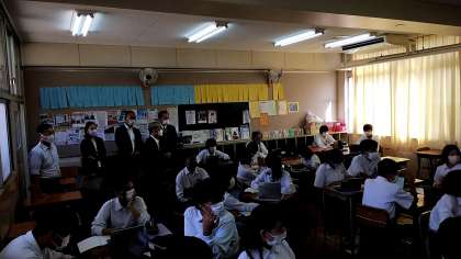 教育委員の皆さまを、お迎えしました。授業をご覧いただいた後、示唆にとんだご意見をいただくことができました。