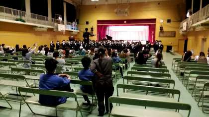 学年のテーマ曲、「瑠璃色の地球」を体育館いっぱいに響き渡る声で斉唱しました。聴衆の皆さまを魅了することができました。。