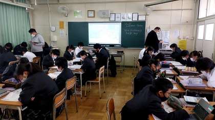 道案内の単元です。ショピングモール内で店の場所を英語で尋ねられたという想定で、ペアで対話しているところです。