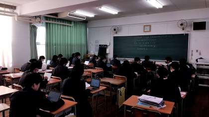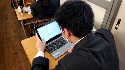 端末を使い、チャレンジテスト(過去問)に取り組んでいます。端末を持ち帰れば、家庭でも学習することができます。
