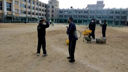 冬休みに入り、朝から部活動に取り組んでいます。顧問とともに部活動指導員が指導にあたります。部活動指導員は、硬式テニス部、ソフトテニス部、卓球部、剣道部で活躍しています。