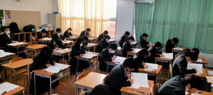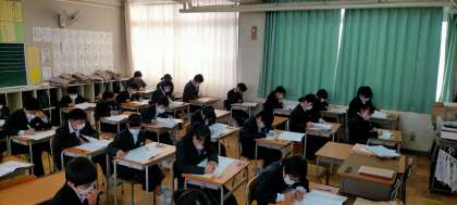 2年生はチャレンジテスト(国・社・数・理・英)が行われています。