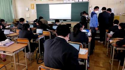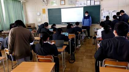 パソコンを使い、スクールライフノート機能の使い方について教わっているところです。次回以降の授業で活用します。