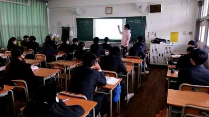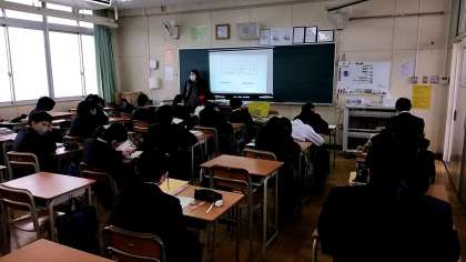 1・2年生は通常授業です。写真は理科の授業の様子。1年生は力のつり合いについて、2年生は飽和水蒸気量について学習しています。