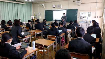 ICTデザイン協力校の成果発表の一環として、1年生英語科の授業を公開しました。