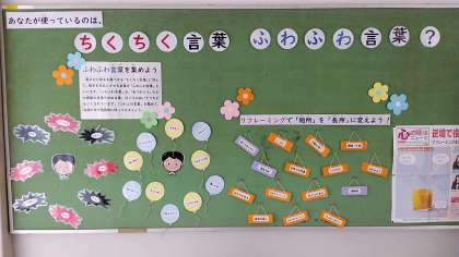 保健室横掲示板の内容が更新されました。「ふわふわ言葉」でのコミュニケーションを心がけたいですね!