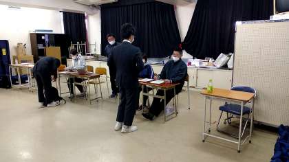 出願を終えた生徒が帰校してきました。受験番号等を報告しているところです。