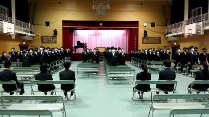 写真は、「旅立ちの日に」を歌う3年生の様子です。