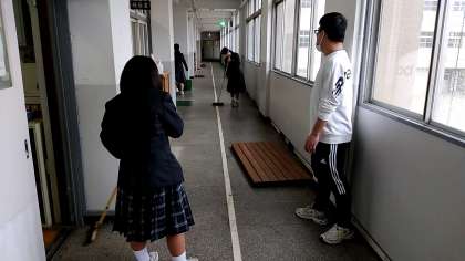全員で手分けしながら、校舎を隅々まで美しくしています。