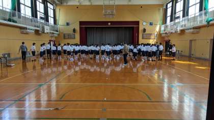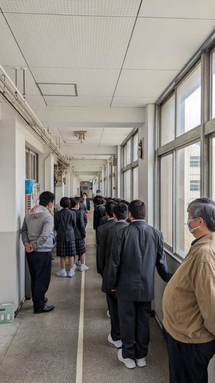 発育測定も行い、1年生は校舎内の様子を熱心に見て回りました。