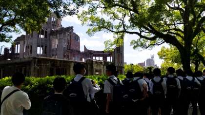 原爆ドームを見学中です。