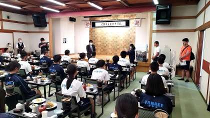 食事会場で入館式を行いました。