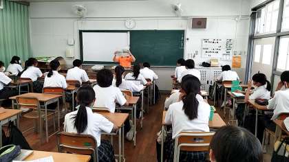 夏休みの宿題の説明を兼ねた鑑賞の授業です。ムンクやダ・ビンチ、ミケランジェロの絵画や生徒作品を鑑賞しました。