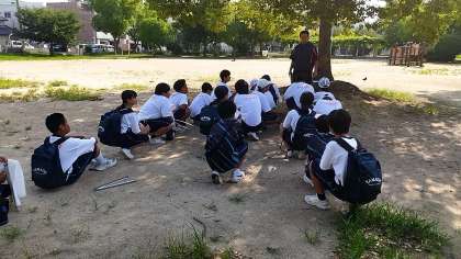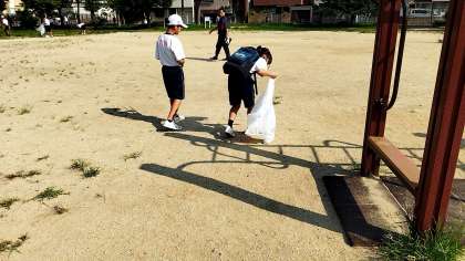 玉出西公園や校舎周辺でゴミ拾いに取り組みました。