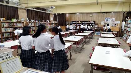 大勢の生徒の皆さんが、お目当ての図書を求めて来館しています。