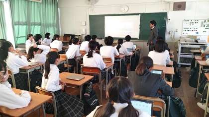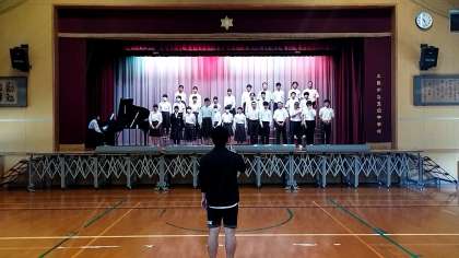 2年生は、クラスごとに体育館で合唱練習をした後、自分たちが歌っている様子を映像で確認し、振り返っています。