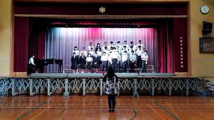 今日は、3年生が舞台を使って合唱に取り組んでいます。
