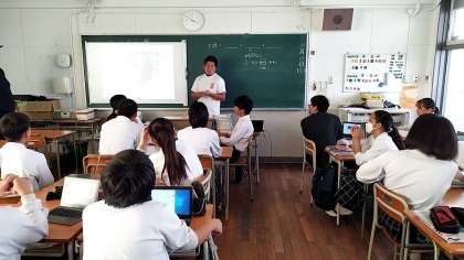C-NETと英語科担当の先生による授業です。海外で空港に降り立った際の入国審査を擬似体験しています。