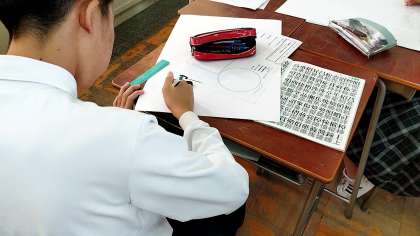 今の気持ちを表す漢字3文字を選び、明朝体で書いた上、ポスターとして完成させます。