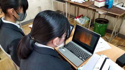 火山に関する動画を見た後、教科書を読んで分かったことがらをワークシートにまとめる授業です。