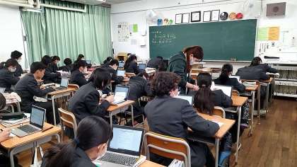 担当教員があらかじめ学習者用端末に配信した習熟度別課題演習を通して、四分位数について学んでいます。